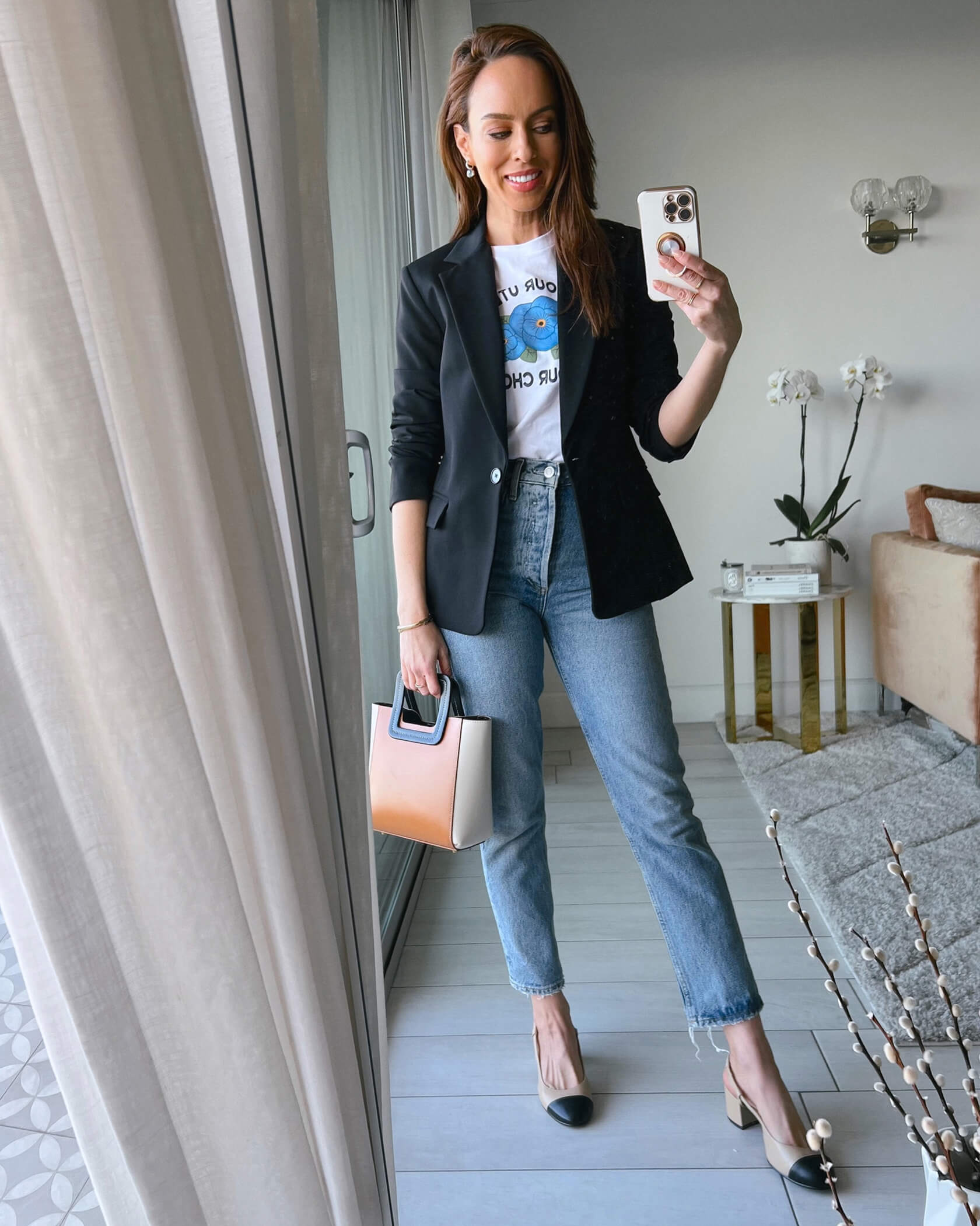 There are also so many options! I have quite a few band tees (my Pink Floyd and Led Zeppelin ones are my faves). I have simpler lettering t-shirts. And I just added this pro abortion rights shirt from Etsy to show off a cause that I care about. I also love that the small business owner, who also has 1973 merch, donates 10% of profits to a different cause every month.
