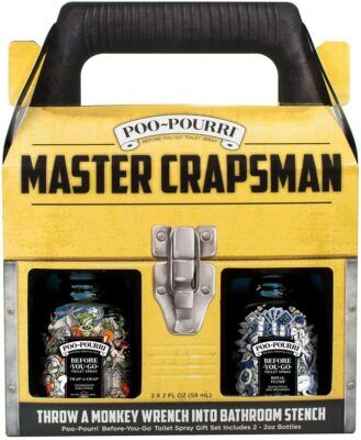 One little spray on the toilet water pre-dump, and all retch-worthy stenches become trapped beneath the deodorizing film. The Crapsman set comes in a little toolbox, so older guys and handymen will eat this up. Give it a try if you have any particularly stinky guests.
