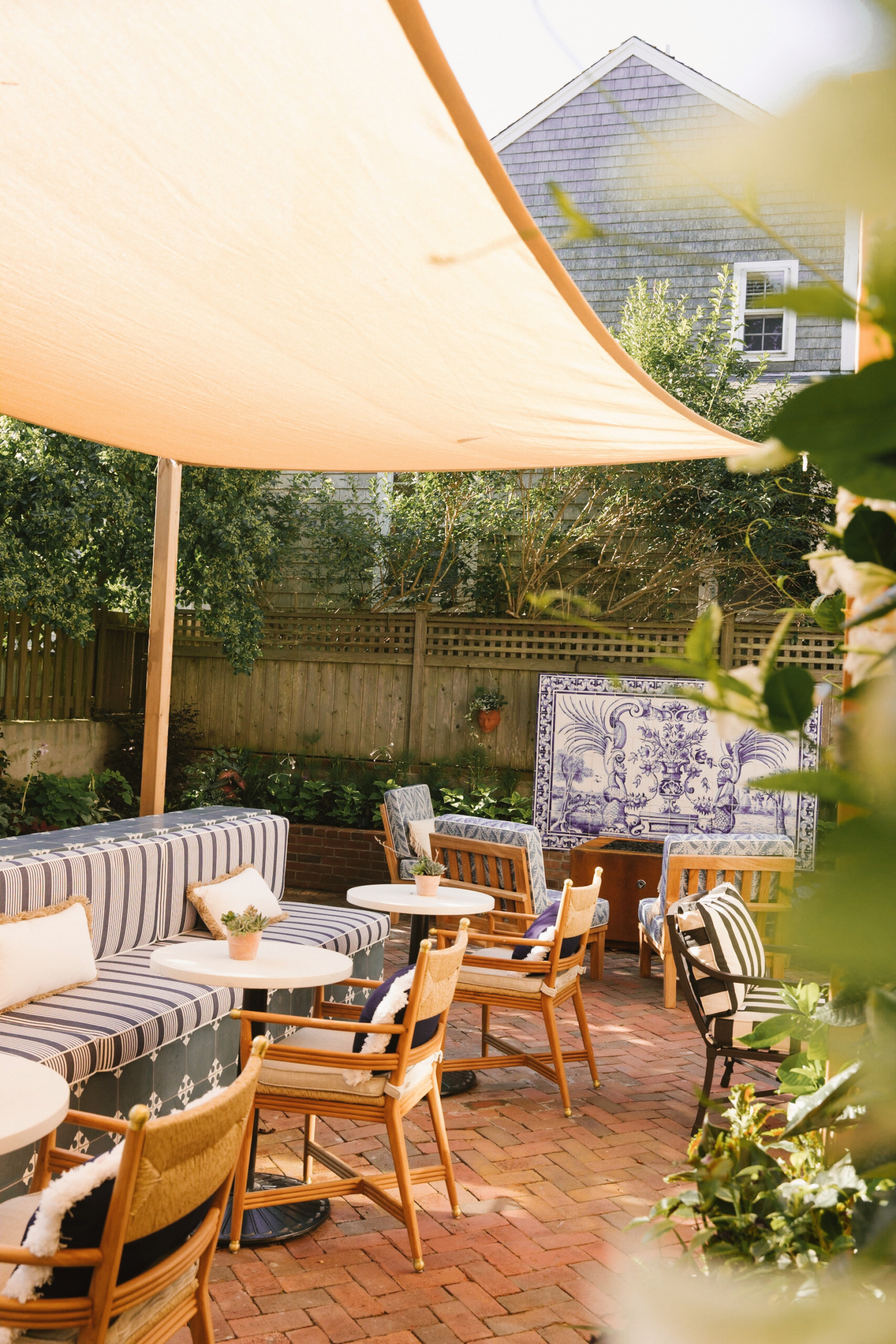 The trip not only lived up to my expectations but exceeded them. We traveled from New York by Tradewind – they have a private airport in White Plains (about an hour out of the city) with a direct 45-minute flight into Nantucket making the trip super convenient. Upon arriving, we checked into Blue Iris, a charming colonial-inspired boutique hotel layered with fine art and antiques. Designed to reflect the love of the seaside, rustic Mediterranean design, and Portuguese pattern play, Blue Iris is Life House Hotels’ latest creation on Nantucket. Just two weeks old, it was such a treat to experience this property that feels harmoniously situated with nature and sits in the heart of downtown, just blocks from shops, restaurants and the beach. We especially loved the lush garden patio for our complimentary morning coffee and breakfast – I couldn’t help thinking the space would make such a pretty venue for an outdoor event! And if Blue Iris is booked, try their sister property, Life House which is just down the block.