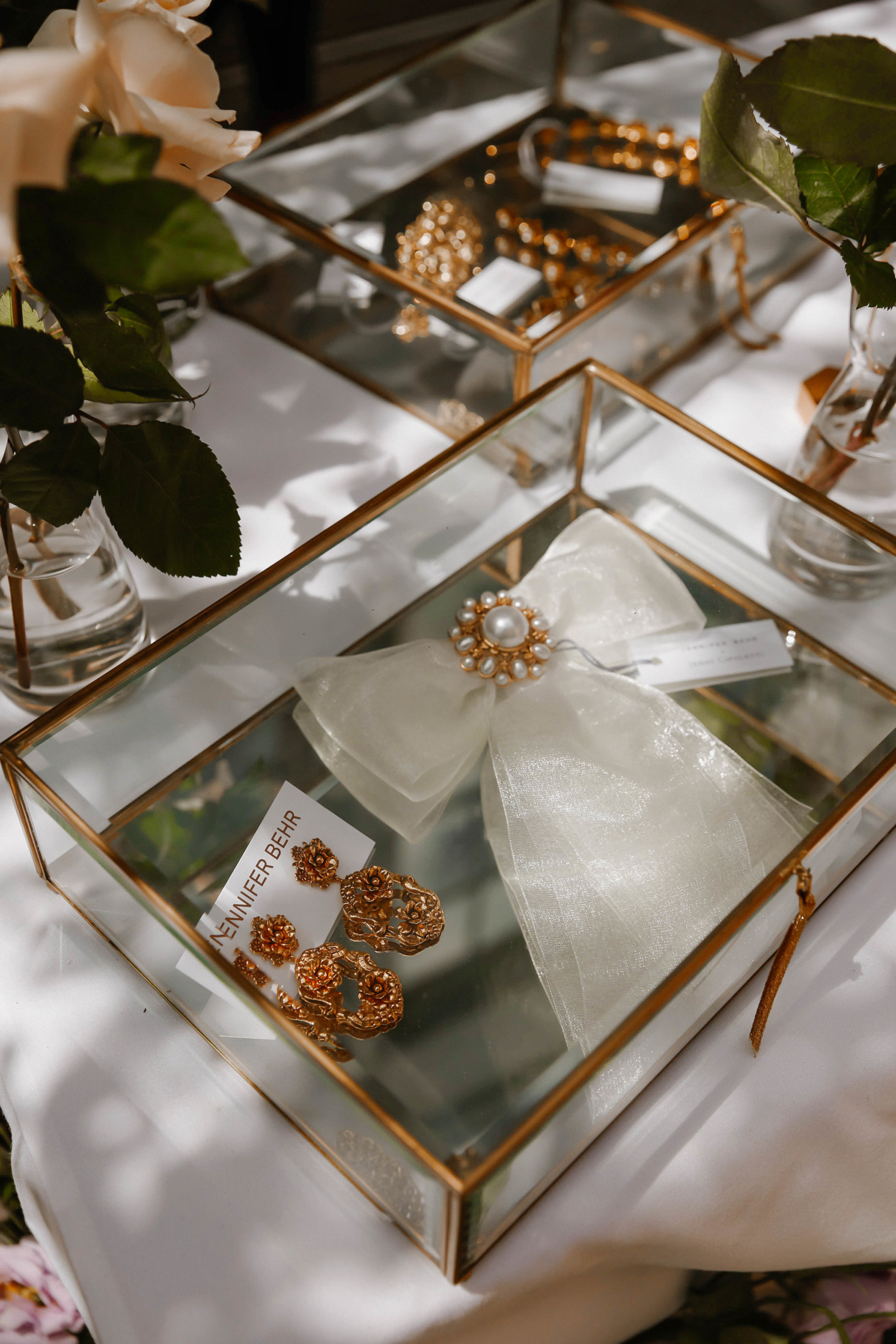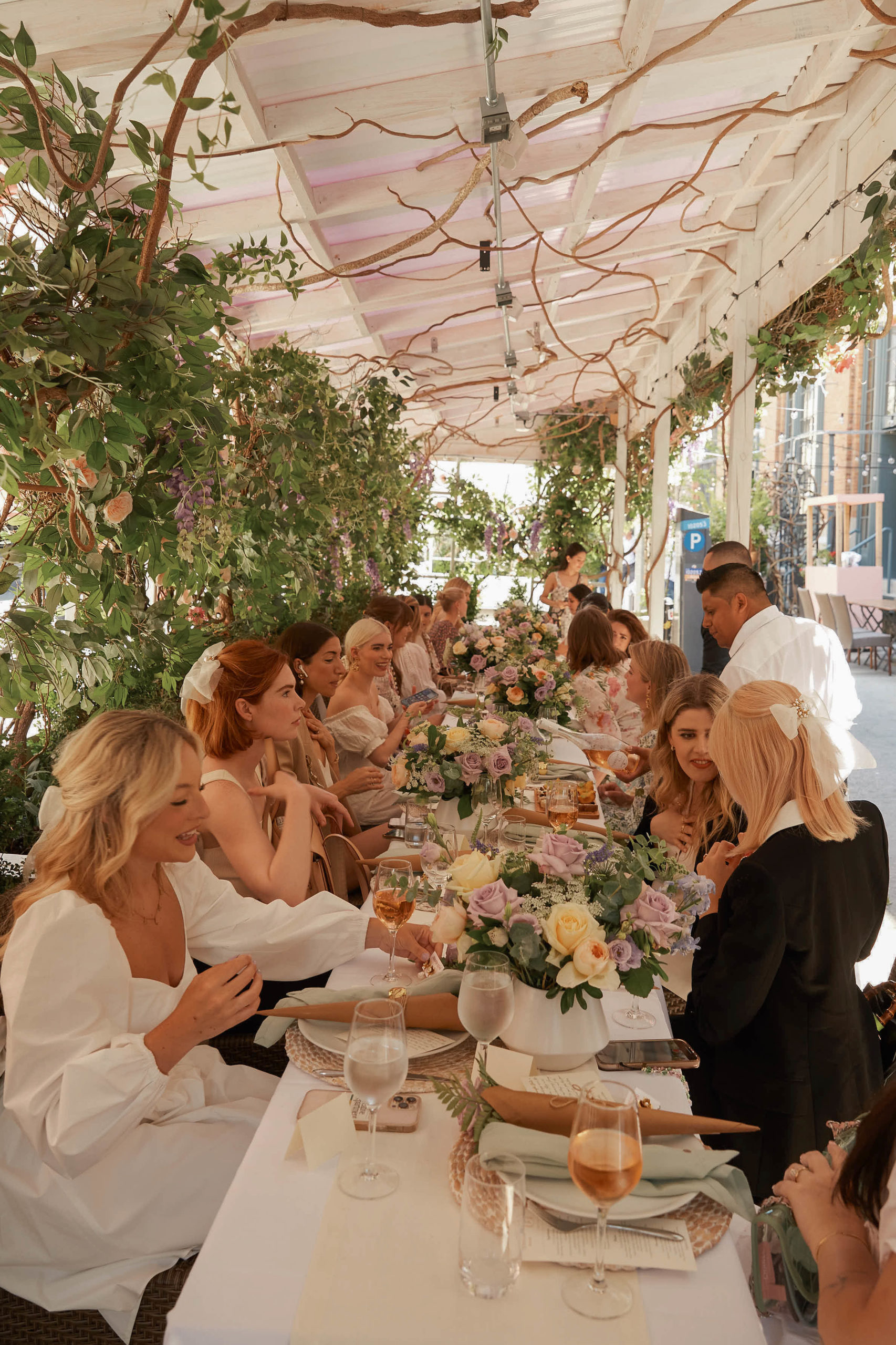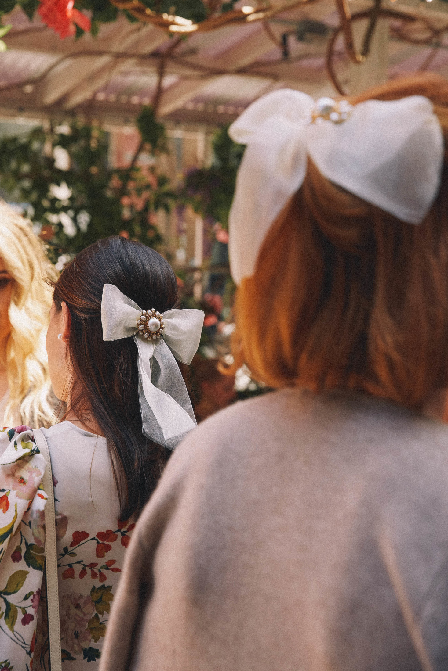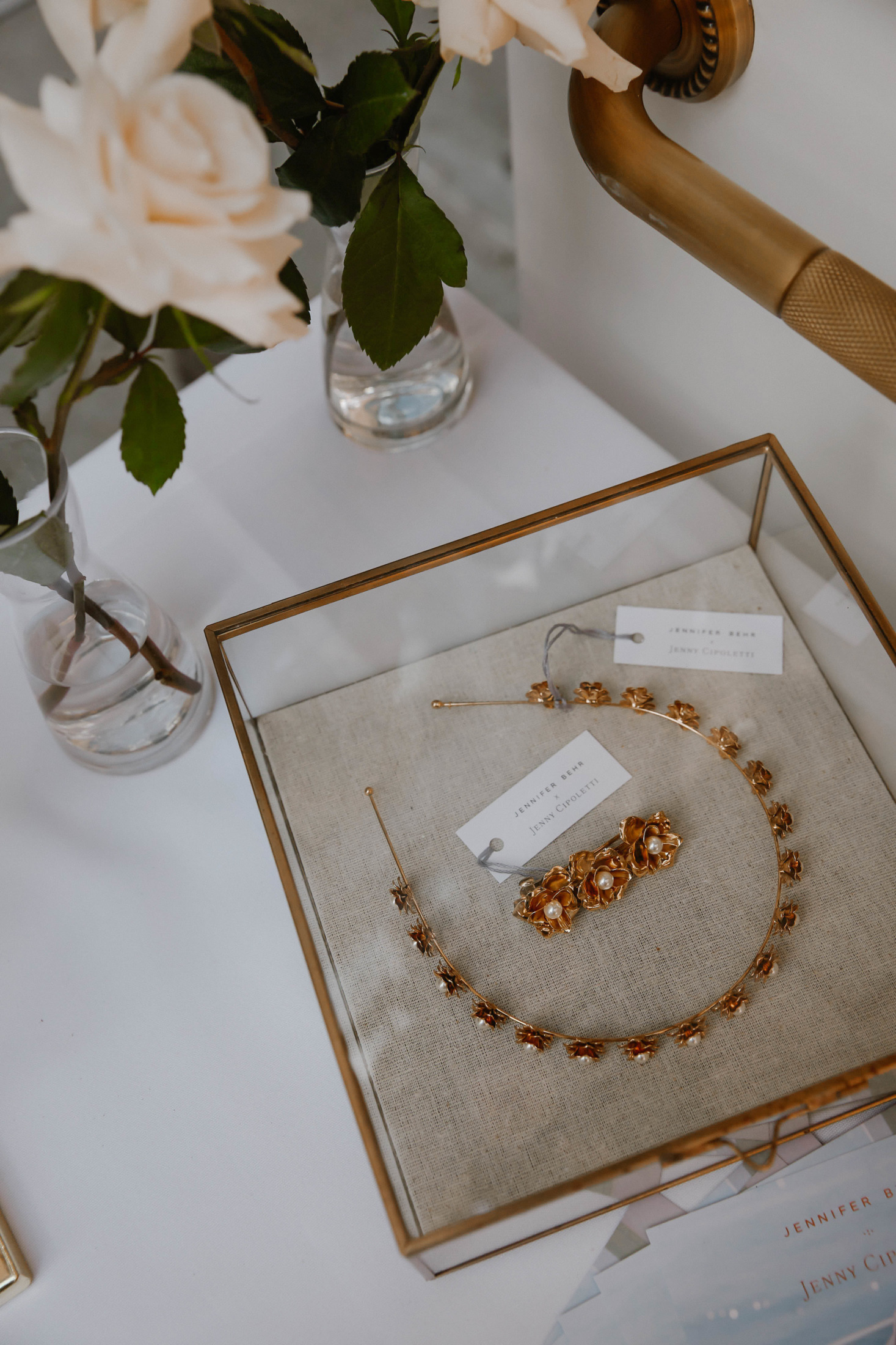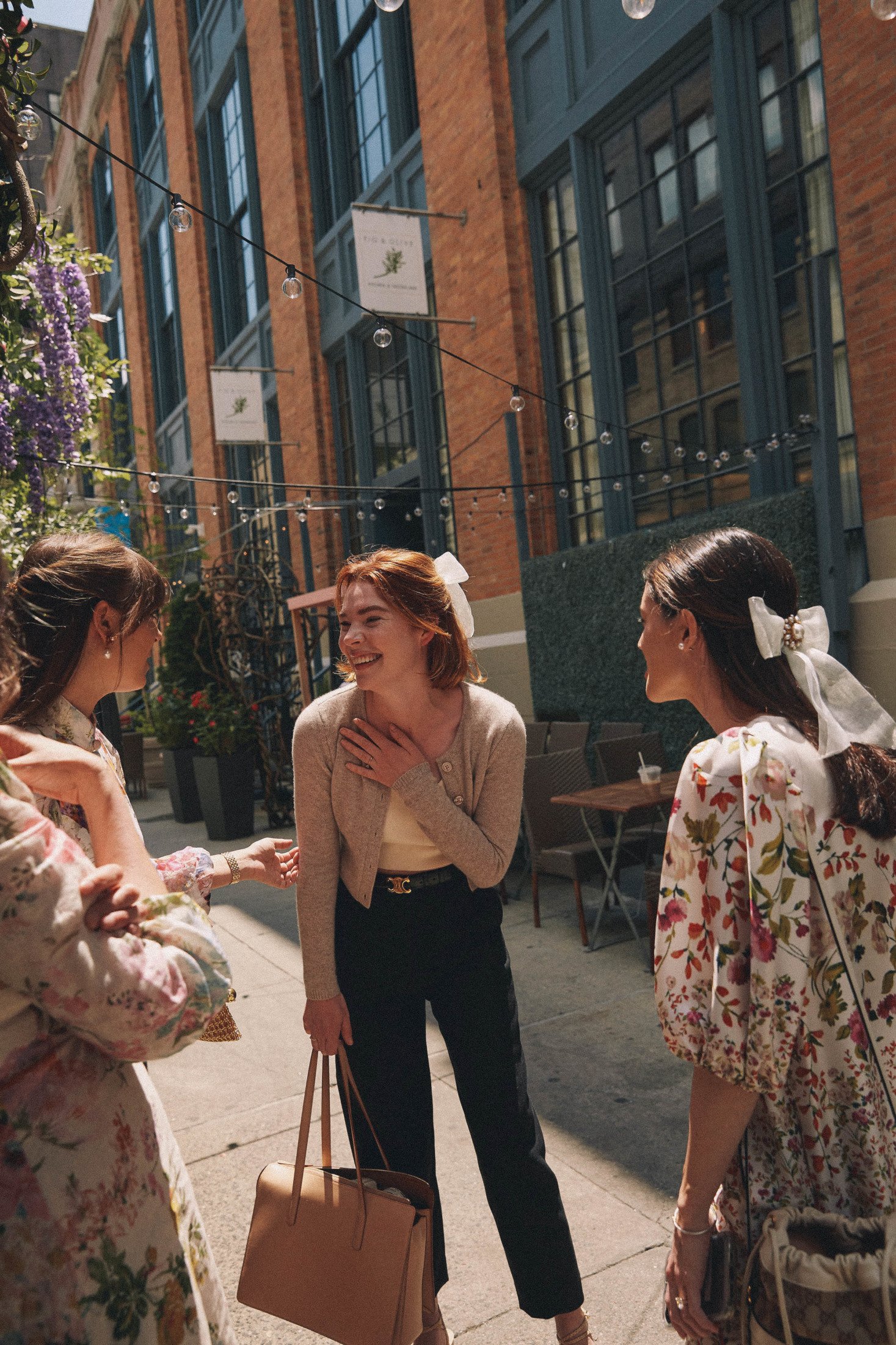 We celebrated on launch day with a lunch at Fig & Olive in the Meatpacking district. The accessories and jewelry were displayed next to this elaborate rosé cart – it was a serious pinch me moment to see my logo next to Jennifer’s blown up on the cart! The flower installation was a beautiful tribute to the design inspiration of florals and gardens. A few of my favorite ladies showed up to support wearing pieces from the collection, that was the moment it felt so real! To see my friends wearing the pieces that I designed meant the world to me.