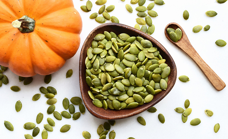 Pumpkin seeds contain iron, phosphorus, magnesium, potassium, manganese. However, the most valuable substance in the composition of pumpkin seeds are phytosterols — fatty acids, very similar in structure to cholesterol, but not that harmful. Phytosterols lower cholesterol levels in the body. In addition, pumpkin seeds are high in fiber and protein.