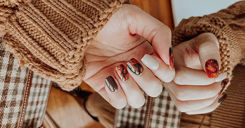 For example, be sure to include Fall colors like brown, red, yellows, etc. Also, if you want to go literal, pick out some cute Thanksgiving or fall-inspired designs to add to your nails like pumpkins, turkeys, fall leaves, etc.